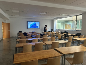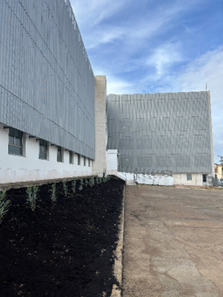 - Ampliación del vestíbulo principal: Se han creado salidas directas a los patios exteriores. Esta reforma convierte el vestíbulo en una zona de paso y conexión eficiente entre diferentes áreas del campus, eliminando la necesidad de rodear el edificio y mejorando notablemente la accesibilidad y el flujo de personas. Además, se ha construido una nueva escalera exterior que conecta de forma directa y segura la planta baja con el sótano reformado.