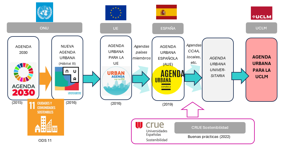 El 28 de marzo de 2023, la Universidad de Castilla-La Mancha firmó un convenio con el Ministerio de Transportes, Movilidad y Agenda Urbana para la aplicación de la Agenda Urbana Española en el contexto de esta universidad.