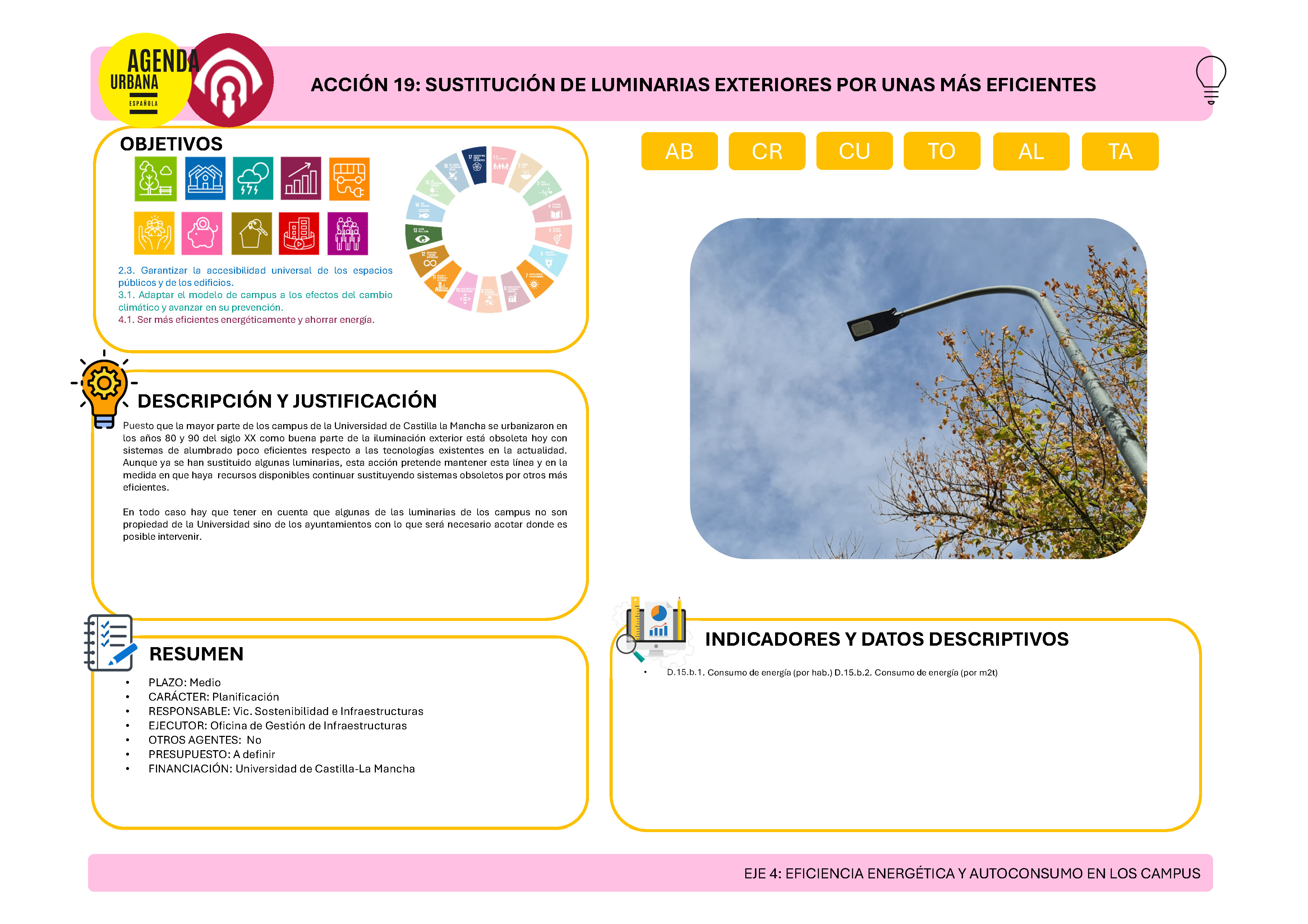 Acción 19: Sustitución de luminarias exteriores por unas más eficientes