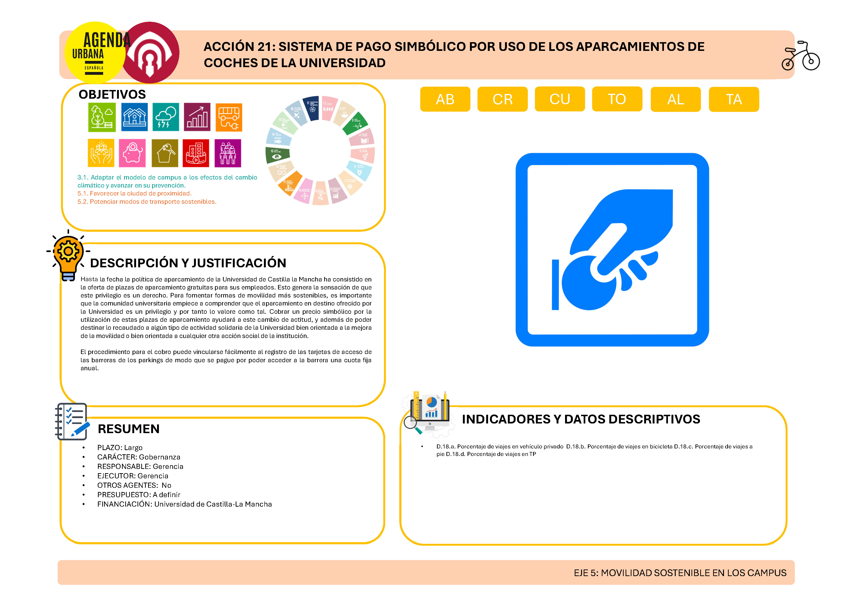 Acción 21: Sistema de pago simbólico por uso de los aparcamientos de coches de la universidad