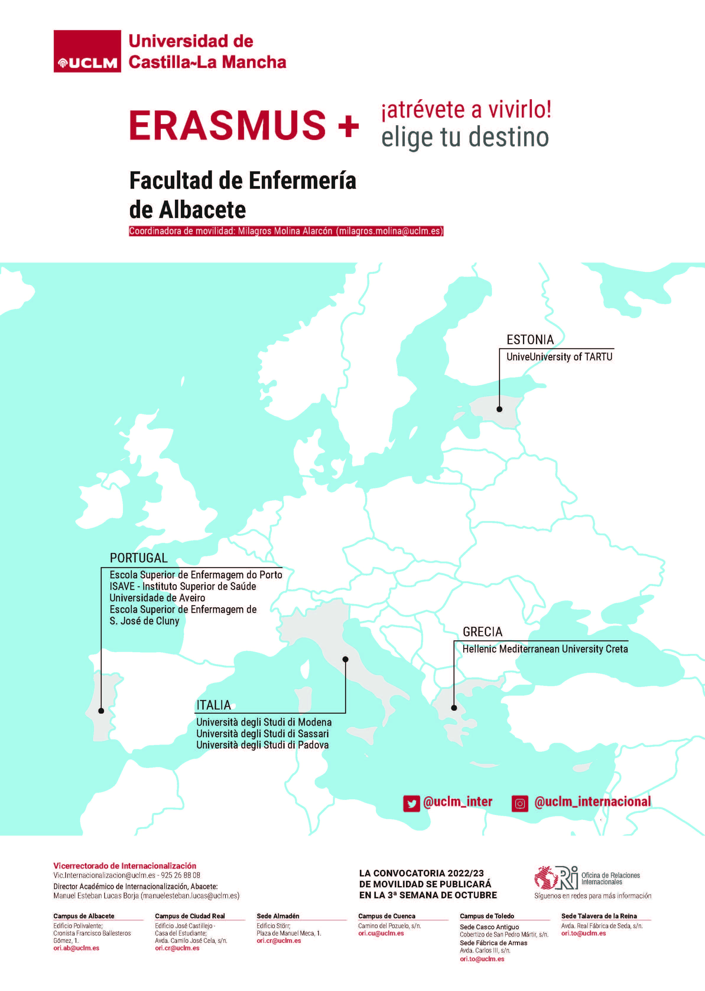 Oferta Erasmus + Facultad de Enfermería de Albacete- Curso 2022-23