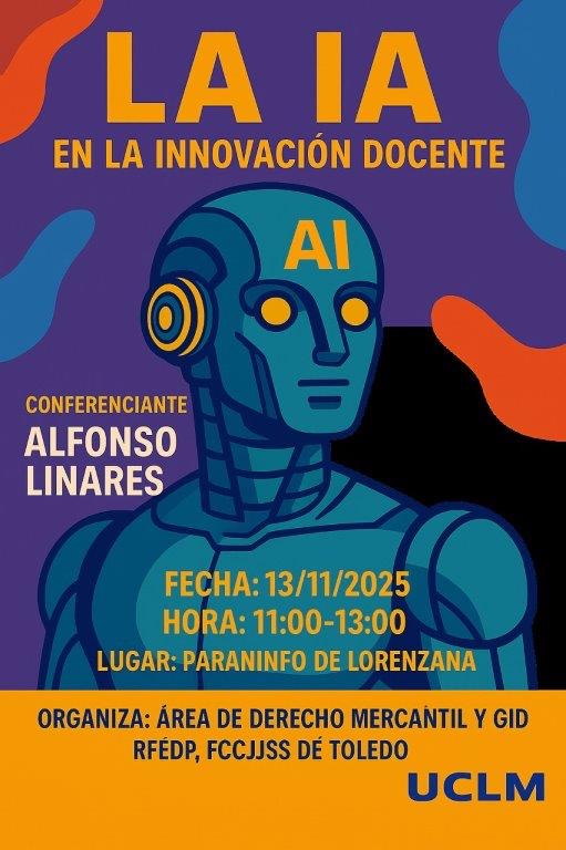 Se informa de la organización el próximo jueves 13 de noviembre de 11h a 13h en el Paraninfo de Lorenzana, de la conferencia "La IA en la Innovación Docente" impartida por Alfonso Linares.
